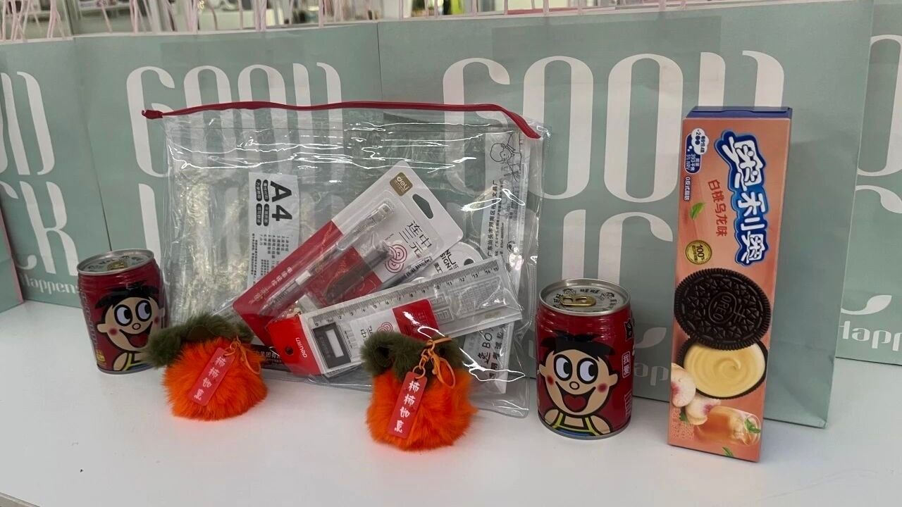 活动现场发放的“考研温馨助力礼包”经过精心设计,每件物品皆承载着美好祝愿:考研专用文具:寓意“下笔有神,答卷如锋”,满足备考实际所需;旺仔牛奶:祝福学子成绩旺盛,运气兴旺;奥利奥饼干:谐音网络流行语“奥利给”,传递“坚持到底,全力冲刺”的鼓励;“心想柿成”挂件:借“柿”与“事”谐音,寓意吉祥,祝愿学子们目标必达,梦想成真。礼品的选取兼顾实用性与象征性,于细微处体现组织者的巧思与深情。