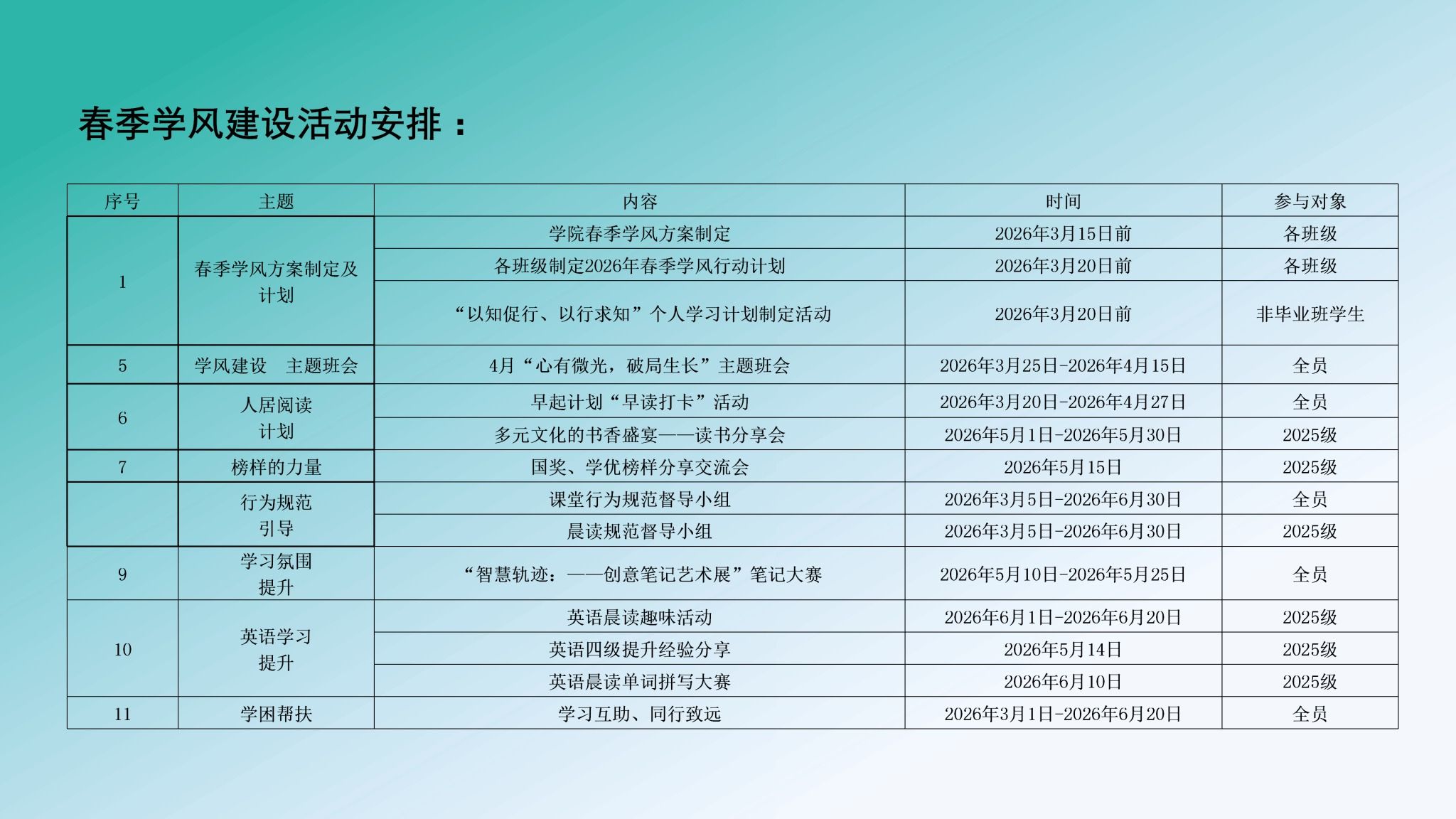 (图二)春季学风建设活动安排