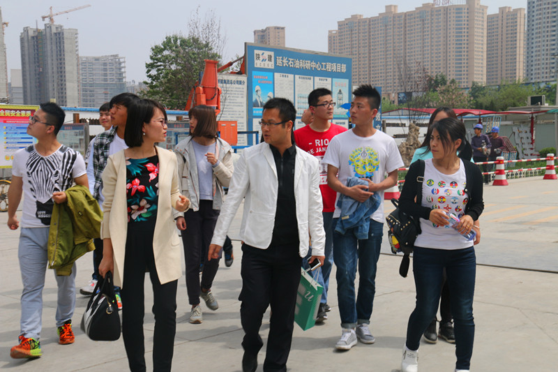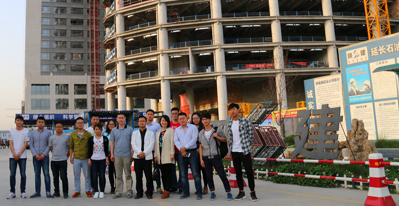 4月20日下午,BIM工作室负责人麻文娜老师和王彩雪老师带领全体工作室成员来到位于西安市高新区的延长石油科研中心项目部BIM工地进行参观学习。
