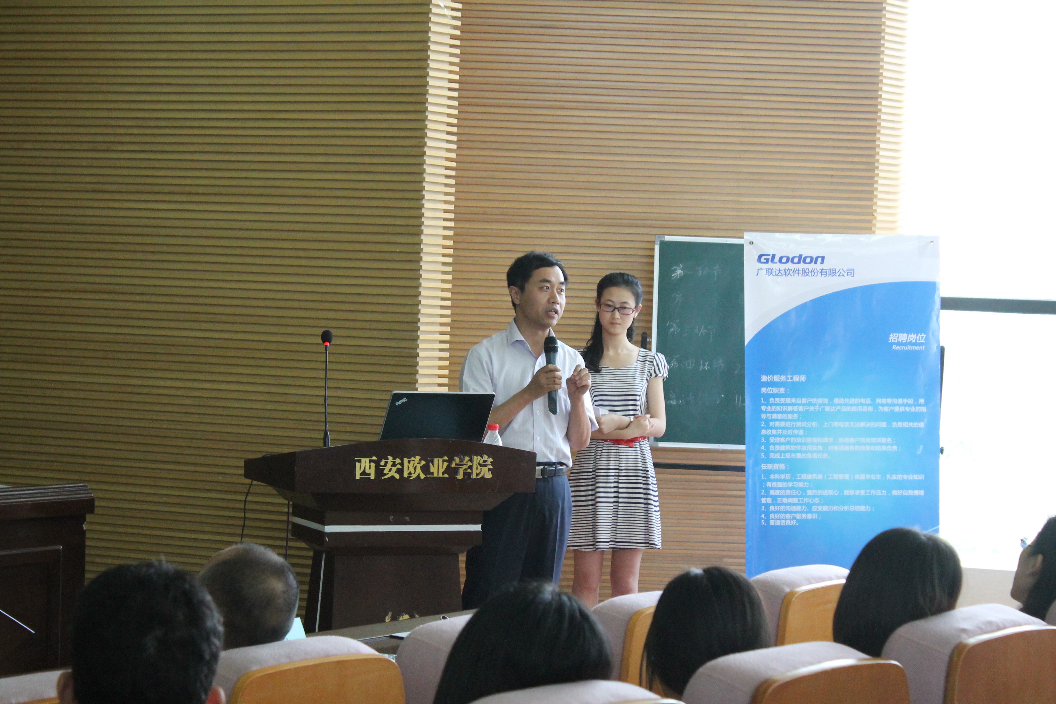 广联达实施经理李晓波就“找工作”、“就业难”等关键词引入,对当前大学生就业形势进行分析,并简要介绍了广联达软件股份有限公司的情况,欢迎大家加入此次“技术服务工程师”培训计划。李晓波经理用诙谐幽默的语言,以十分轻松的有奖问答形式,让大家对广联达软件股份有限公司,对“技术服务工程师”培养计划都有了详细的了解。广联达校友代表工程管理2012级学生朱新钰与大家也分享了在广联达工作、学习的成长与快乐。会上,广联达软件股份有限公司戍恩亮总经理对本次合作培养“技术服务工程师”项目,做了更详细的补充说明,欢迎同学们能够加入到广联达公司。