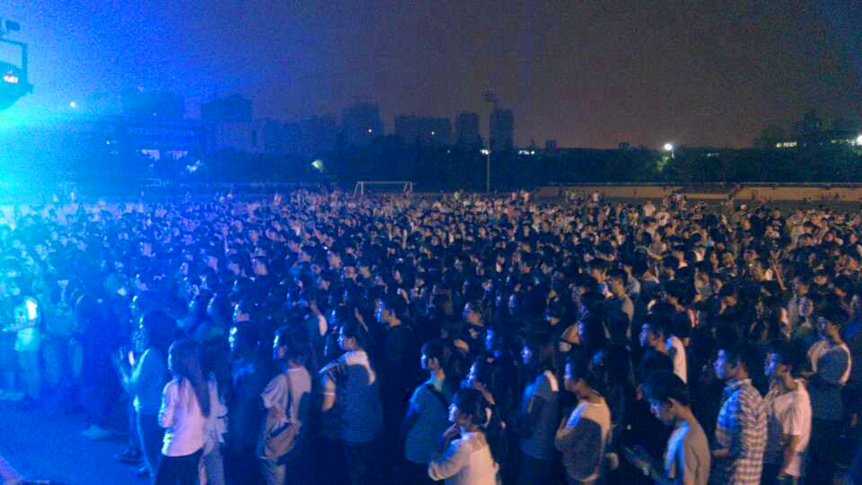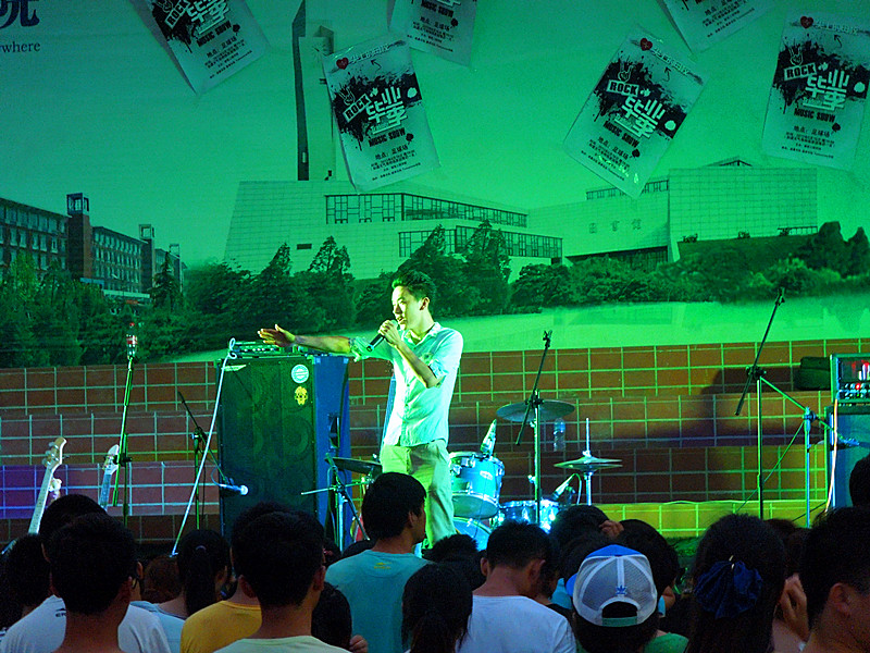 22:00 由建筑工程学院演出经历丰富的迷桑乐队(原午夜阳光乐队)上台献唱,他们用一曲重金属风格歌《光辉岁月》唱出对大学生活的留恋和未来的憧憬。最后的这一首歌将现场气氛推向了最高潮。