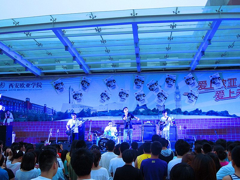 表演甚至吸引了老师们的热情参与。主唱的四支乐队分别是(大部分都由欧亚学生组成)迷桑乐队(原午夜阳光乐队)、彼岸乐队、Tomorrow乐队、未卜乐队。他们热爱音乐、热爱生活、热爱欧亚,他们集结在美丽的欧亚学院,一起用音乐歌唱青春、歌唱梦想,欢送毕业生。