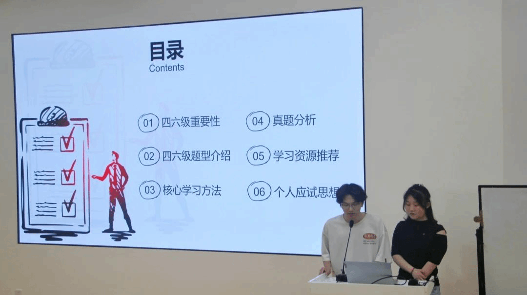 2024 年 6 月 12 日,国际语言中心联合人居环境学院举办的大学英语四级全真模拟考试在西A301顺利进行。至此,“助力四级,暖心护航”人居环境学院四级考前辅导系列活动圆满落下帷幕。本次系列活动旨在为即将参加四级考试的同学们提供全方位的支持和指导。活动期间,人居大学英语教学团队精心组织了多场专题讲座,提供线上线下的个性化辅导,帮助同学们掌握四级考试的重点、难点和解题技巧,从容应对四级考试。根据人居环境学院2023年12月的四级成绩,人居环境学院大学英语教学团队筛选了88名四级分数在380-424分之间的学生进行精细化的考前辅导。人居大学英语教学团队的每位大学英语教师指导11位学生,建立微信群,通过线上线下相结合的方式进行个性化的辅导。教师们根据每位学生的实际情况,帮助学生制定具体的刷题计划,及时督促学生完成刷题任务,对学生的翻译和写作进行精细批改,指出错误并提供改进建议。本次精准提分辅导旨在提升学生的四级英语成绩,帮助学生突破瓶颈,实现自我提升。同时教师也能更深入地了解学生的需求和问题,为今后的教学提供更有针对性的指导。5月8日在西C001,王宝林、王艺菲两位近期在四级考试中取得高分的优秀学子应邀分享了四六级考试的经验。他们从四六级重要性、四六级题型介绍、真题分析、学习资源推荐、核心学习方法、个人应试思想等六个方面进行了深入而细致的分享。王宝林同学分享了自己的核心学习方法,如词汇笔记、高效记单词法以及阅读中的同义替换法。王艺菲结合四六级听力真题,分享了获取信号词等听力技巧。这些宝贵的经验将为同学们提供实用的参考,帮助大家少走弯路,更加高效地备考。