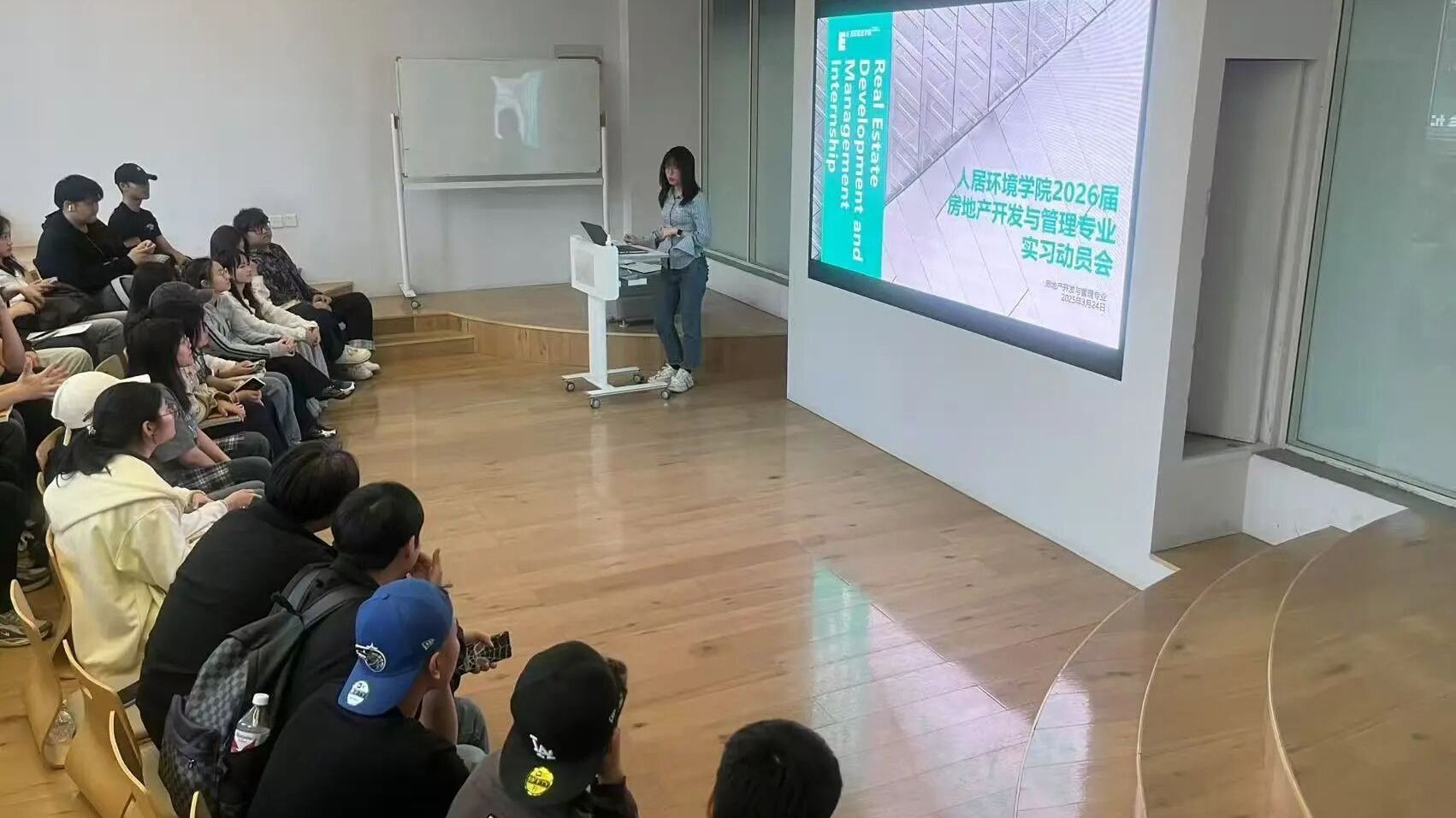 part 2专业讲座:校园到职场的黄金法则。专业讲座以“从校园到职场的无缝衔接”、“实习就业黄金法则:面试内容与技巧”为主题,由工程管理专业龚琳老师与房地产开发与管理专业刘珈言老师联合讲授。内容聚焦三大模块,从实战切入,让学生了解职场的基本规则和面试技巧,掌握从简历制作到面试应对的全流程。讲座中,龚琳老师结合自身经历,分享真实案例,帮助学生理解职场文化,提升职业素养。通过互动环节,解答学生关于职场沟通、团队合作等方面的疑问,进一步强化理论与实践的结合。学生纷纷表示受益匪浅,对即将到来的实习充满信心。part 3专业负责人面对面:实习注意事项与问题处理。在房产专业学生进行实习前夕,专业负责人薛婷老师用一节课时间强调安全防范意识,解答学生关于实习权益保障等疑问,确保每位学生都能在实习中安心工作,顺利应对各种突发情况。要求在实习期间,学生们需定期向各自指导老师汇报进展,及时反馈问题。薛婷老师还特别强调了实习期间的职业道德和职业操守,要求学生严格遵守企业规章制度,尊重同事,保持良好的工作态度。学院将定期与企业沟通,了解学生表现,确保实习效果。通过此次系统化的实习实践,学生们不仅积累了宝贵的工作经验,更明确了职业发展方向,为顺利步入职场做好了充分准备。
