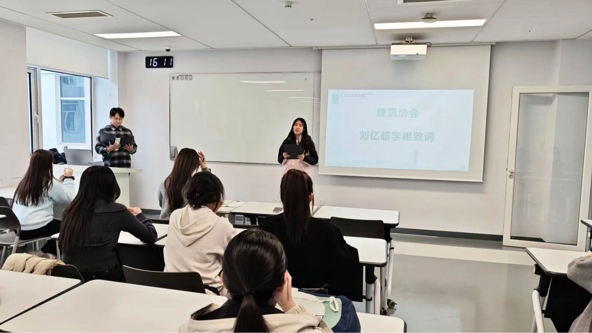 当换届的钟声敲响,建筑协会的故事又翻开了崭新一页。这场以“传承筑梦,聚力启航”为主题的活动,不仅是一次工作的交接,更是梦想与责任的传递,是社团文化与精神的深度传承。活动现场:秦鸿飞老师首先向往届同学致以敬意正是他们的深耕与坚守,夯实了社团发展的根基,每一份付出都沉淀为宝贵的成长印记。其次新程已至,期待新的同学们接续这份责任,以主动作为、务实担当,为社团发展注入新动能,共筑更好明天。建协上任会长刘亿超同学发表讲话,她将建协的大旗交到了新任团队手中,从接过到交托,这面旗承载了一届人的付出,如今郑重传递,是让责任延续、让热爱接力,盼新团队能擎着这面旗,带社团走得更远、更好。
