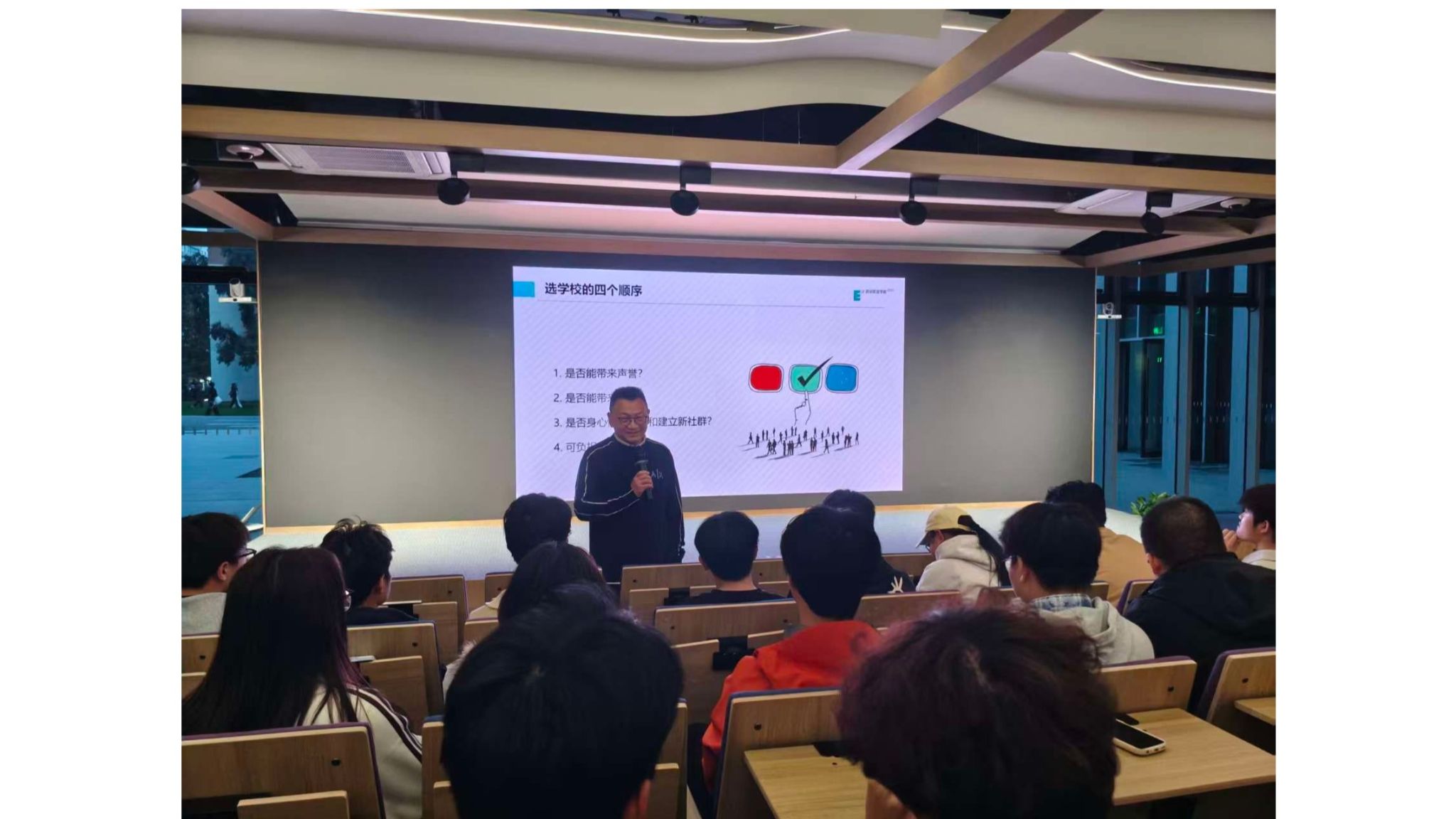本次活动邀请到西安欧亚学院创办人、董事长胡建波教授参与,胡建波通过“企业导向,学生中心”的教育理念为主题,为学生讲解了春山里与和光文体中心建设背后的故事。
