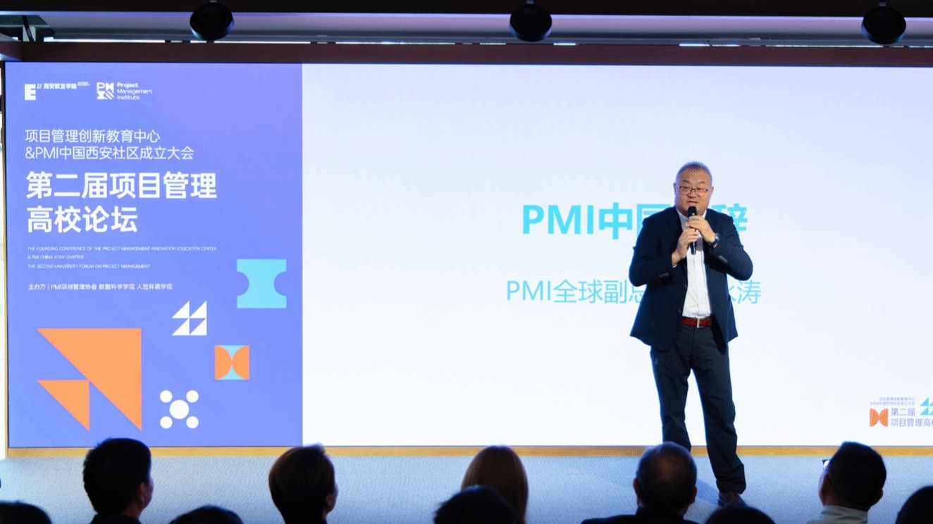 PMI全球副总裁陈永涛在致辞中介绍了包含项目执行能力、专业知识储备及与组织战略目标契合度的项目管理“人才三角”理念,强调PMP、CAPM等国际认证人才的重要性。目前全球约150万PMP认证者中,中国(不含港澳台)占近70万,这反映了中国经济快速发展对项目管理人才的巨大需求。未来二三十年内项目经理人才缺口预计达两三千万,为年轻学子提供广阔职业空间。此外,PMI与中国年轻大学生共建社区交流平台,通过跨行业、跨学科案例学习与实践分享,推动项目管理在中国的整体发展,为年轻学子的职业规划奠定坚实基础。西安欧亚学院创始人胡建波董事长在致辞中介绍了项目管理人才三角理念,包括项目执行能力、专业知识及与组织战略目标的契合。他强调,随着后物质时代人们个性需求增多,学习需兼顾技术、设计思维及商业模式。以学生公寓为例,说明满足真实需求的重要性。此外,胡董指出项目制学习能提升教学质量与实战能力,并介绍了与PMI携手合作的诸多裨益,包括课程国际认证及融入PMI社区带来的就业机会。最后,他鼓励学生们拓宽视野,将项目管理知识运用于各行各业及生活中。西安欧亚学院人居环境学院方放副院长对项目管理创新教育中心进行介绍,他提到,项目管理创新教育中心由专业协会、高校和企业共建,融合国际实践与国内需求,聚焦项目管理全生命周期能力培养,以定制化课程、实战教学和专业师资为支撑,还联合全球领先的PMI协会,与西安欧亚学院有合作基础,上半年已举办论坛、签署备忘录并开展CAPM认证相关活动。提供专业培训课(多种授课方式结合理论与实践)、完善考试服务(报名指导、时间地点安排及后续服务)、权威认证服务(协助PDU积累)及丰富社区活动,助力学员提升竞争力,为企业输送人才,目前中心已为第一批学员举行开班仪式,后续培训工作正在进行中。PMI中国社区经理刘婉洁女士对PMI(中国)社区进行了简要介绍。她提到,西安中心经过二十多年深耕,中国地区已有68万持证专业项目经理及六千多名志愿者,他们保持好奇、积极探索,通过PMI知识体系获得国际化标准,并持续与同行、跨行者交流学习,带领团队在变化中调整迭代交付,展现项目管理价值。同时,他鼓励在校大学生学习项目管理思维,拥抱变化,锻炼商业分析能力,拓展个人边界。最后,他祝贺PMI(中国)西安社区成立,感谢项目管理创新教育中心的支持,呼吁共同为西北地区创新性人才发展贡献力量。