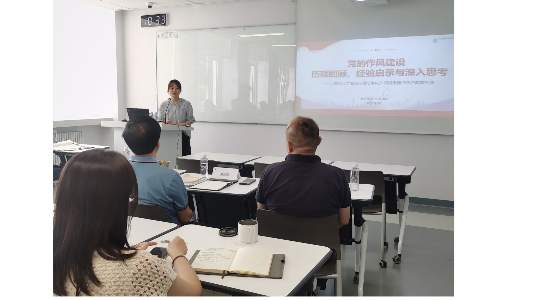 党课内容紧扣“深入贯彻中央八项规定精神学习教育”主题,重点从作风建设历程回顾、经验启示、深入思考三个部分展开讲授,清晰透彻地将党的作风建设相关理论内涵与实践进行阐释,全面深化了党员对作风建设的理解与认识,助力作风建设在学院走深走实。